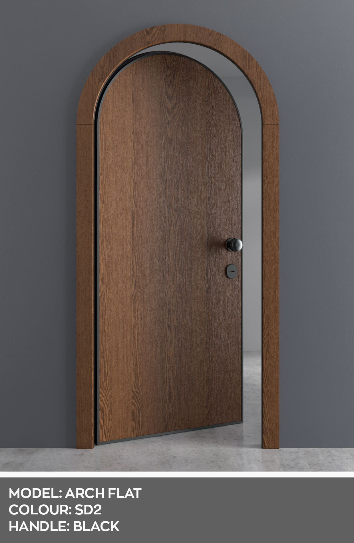 Usa securizata antiefractie model ARCH FlAT poate avea dublu sau triplu blindaj. La fabricarea acestui model se utilizeaza balamale de tonaj mare , iar blindajul tocului usii este din table de 2mm grosime. Pentru izolarea fonica si termica se foloseste vata bazaltica ce se afla in interiorul blindajului, si cate 2 sau 3 garnituri de etansare. Pentru securitate poate avea de la 13 pana la 20 de puncte de inchidere cu bolturi din hotel de 18mm.